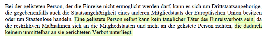 Die Gelisteten werden durch die Sanktionsverordnungen der EU zwar komplett rechtlos gestellt, aber nicht strafrechtlich belangt.